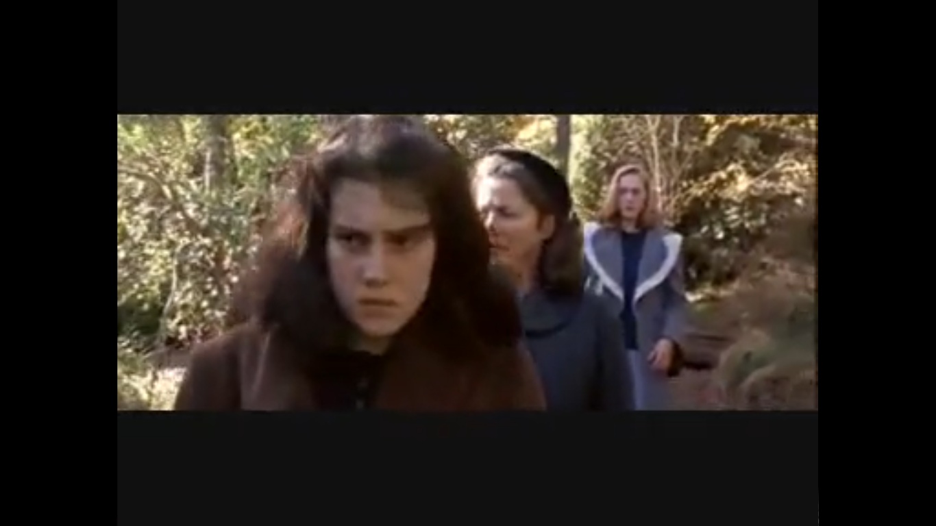 The scene then cuts to a Long shot of the scenery. The use of the Long shot establishes location, which in this case would be a very big park with them being isolated and away from prying eyes and no one seeing what it is that Juliet and Pauline would do.